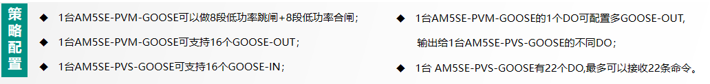 防逆流策略:10kV进线测逆流监测点处配置2台AM5SE-PVM-GOOSE去采集逆流监测点电流、电压,计算实时功率,大浦线和神特线每个并网点配置1台防逆流从机AM5SE-PVS-GOOSE的从机,主从机之间通过光纤组网GOOSE通信,主机在监测到低功率,触发低功率定值时通过GOOSEOUT发出动作信号,对应配置GOOSEIN的从机接收主机的命令后跳开对应并网点断路器,主机在监测到功率恢复时,也通过GOOSEOUT发出动作信号,对应配置GOOSEIN的从机接收主机的命令后恢复并网点断路器合闸,同时监控系统软件采集防逆流主机功率数据,监测点功率触发防逆流装置跳闸前通过防逆流软件降低逆变器的发电功率,在防逆流保护装置的跳闸的前实现柔性调节。