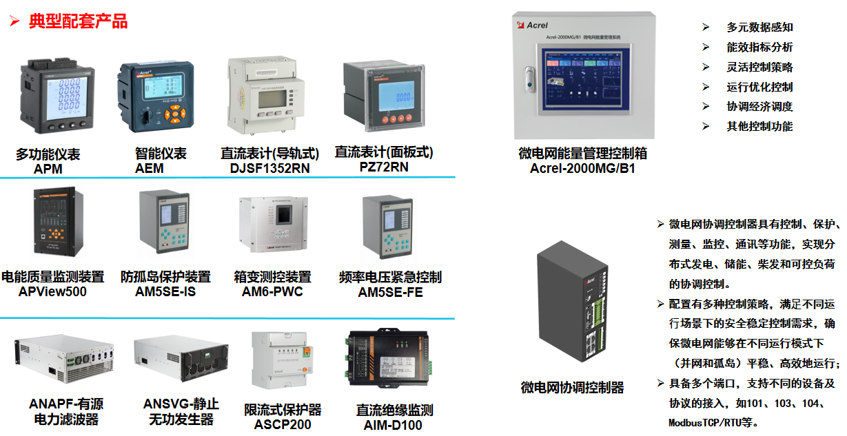 安科瑞微电网系统解决方案,通过在企业内部的源、网、荷、储、充的各个关键节点安装安科瑞自主研发的各类监测、分析、保护、治理装置;通过的控制、计量、通信等技术,将分布式电源、储能系统、可控负荷、电动汽车、电能路由器聚合在一起;平台根据电网价格、用电负荷、电网调度指令等情况,灵活调整微电网控制策略并下发给储能、充电桩、逆变器等系统与设备,保证企业微电网始终安全、可靠、节约、高效、经济、低碳的运行。
