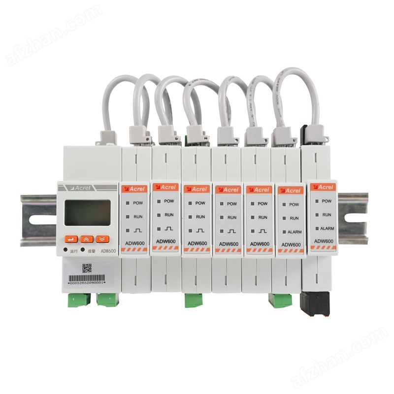 ADW600 多回路电力计量模块专为低压网络三相有功电能计量设计,具备体积小、安装简便、功能丰富优势,采用模块化设计(含电压、电流、开关量、测温漏电模块),模块间通过网线连接且支持多回路拼接,适用于低压侧多回路计量场景,尤其适配电力改造需求。